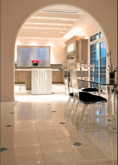 This is an exemplary example of how to create a classical look with a modern twist. This kitchen by Design Republic is beautiful and uses soft colours and traditional lines to provide the cautious client with comfort and reassurance. There is nothing dangerous in this design and it evokes a feeling of calm right down to the artistic and personal pattern that has been backlit through the translucent Corian worktop.